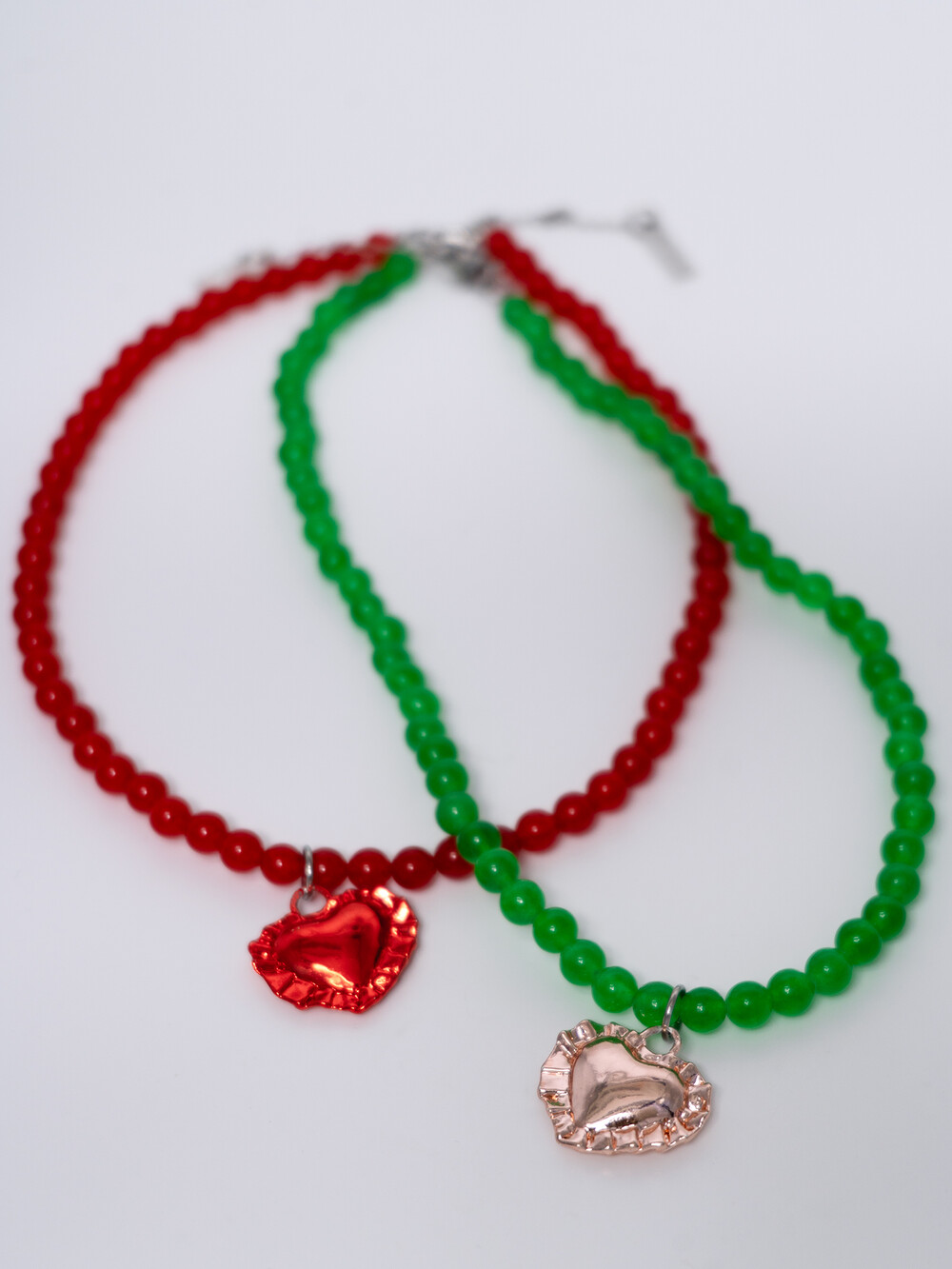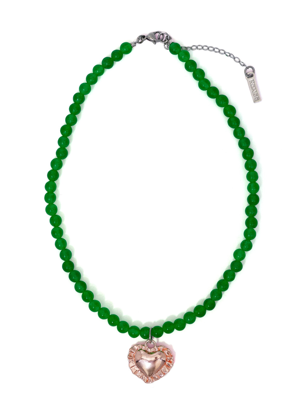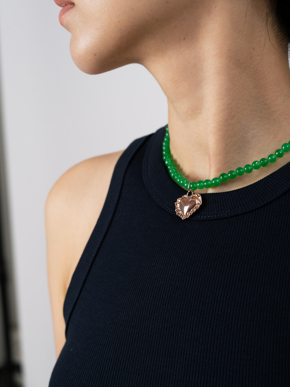 하트 그린 펄 네크리스는 6mm 사이즈의 그린색 진주와 로즈골드 하트 펜던트를 사용했습니다.