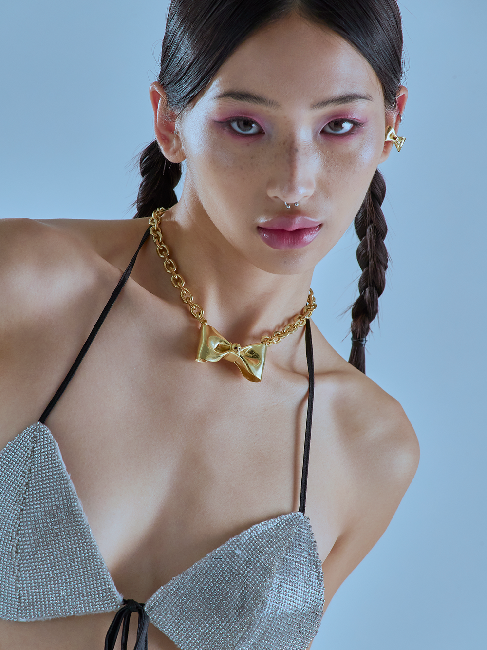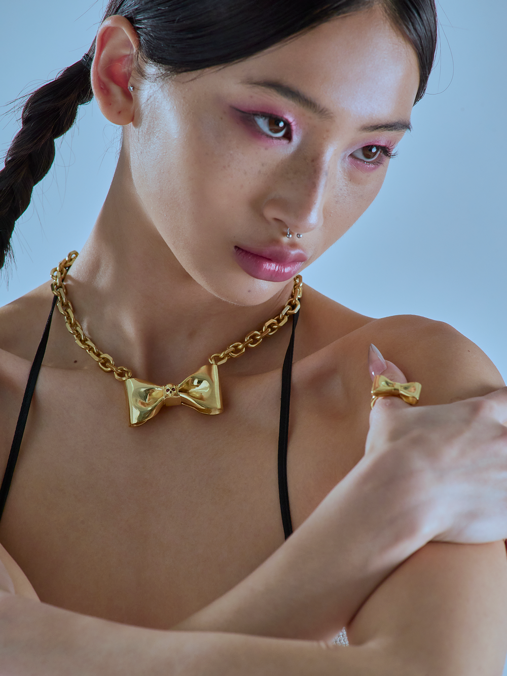 리본의 접힌 주름과 유려한 곡선, 천의 느낌 등을 금속으로 리얼하게 표현해 노악의 아이덴티티가 살아있는 시그니처 리본 목걸이로 아름다우면서도 이질적인 강렬함을 느낄 수 있습니다.
