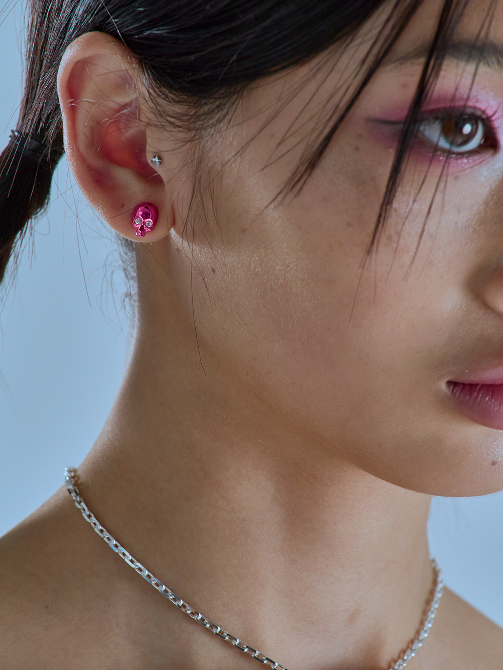 귓불에 착 붙는 사이즈의 마이크로 미니 스컬 이어링입니다. 작은 사이즈이지만 해골의 치아 하나하나까지 살아있는 디테일이 뛰어난 제품입니다. 눈에는 원석을 세팅해 더욱 퀄리티를 높였습니다.