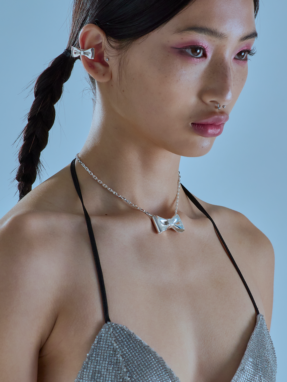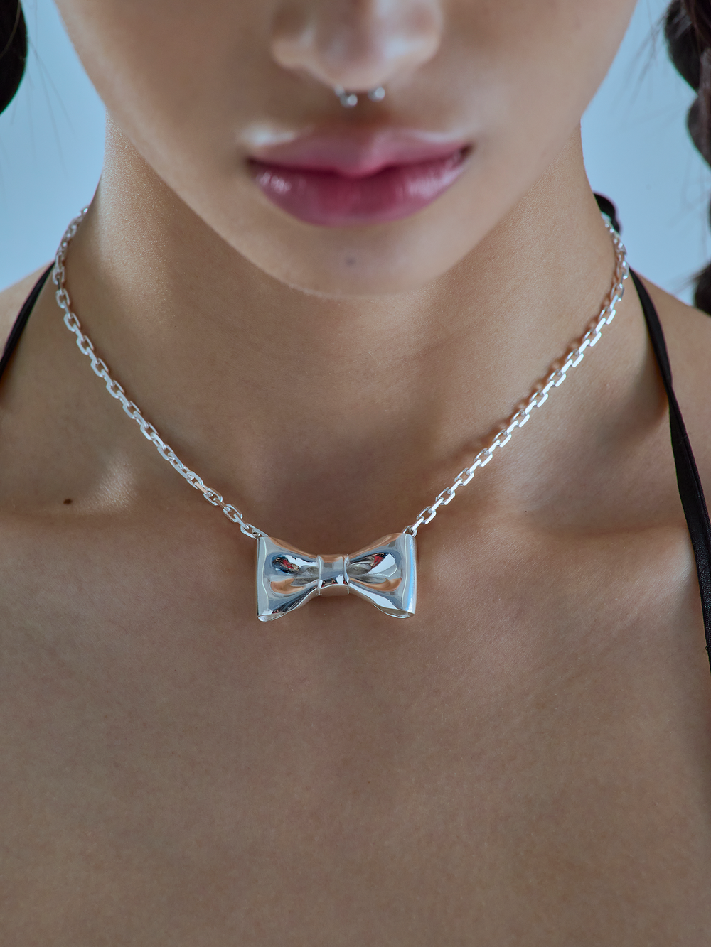리본의 접힌 주름과 유려한 곡선, 천의 느낌 등을 금속으로 리얼하게 표현해 노악의 아이덴티티가 살아있는 시그니처 리본 목걸이입니다. 아름다우면서도 이질적인 강렬함을 느낄 수 있습니다.