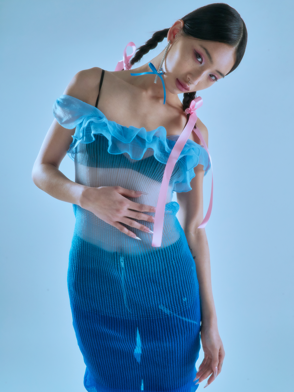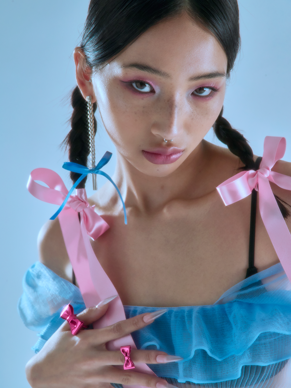 노악의 새로운 컬렉션 <Reborn of the Ribbon>은 로맨틱함과 잔혹함을 동시에 지닌 소녀의 캐릭터에서 영감을 받았습니다.