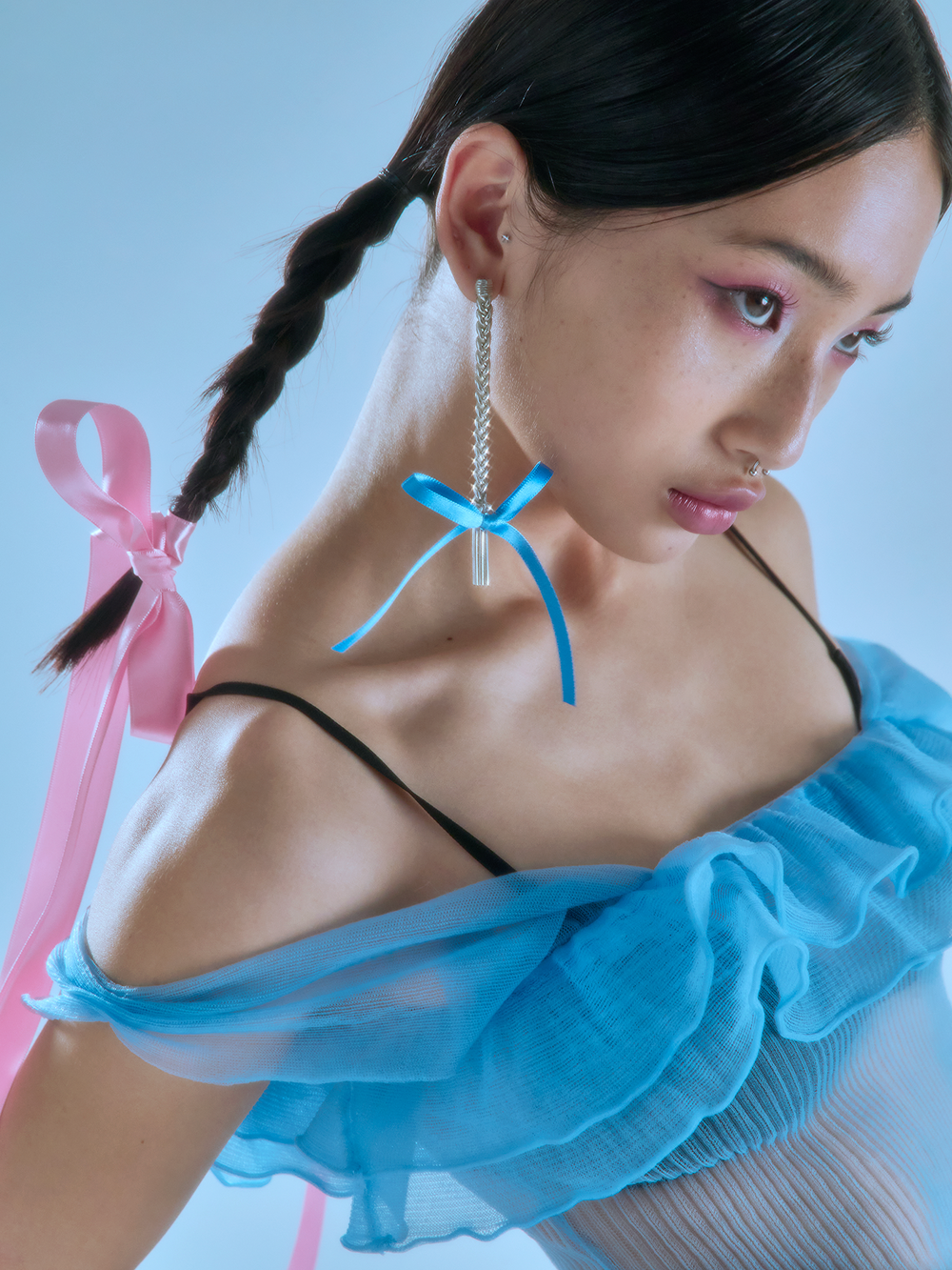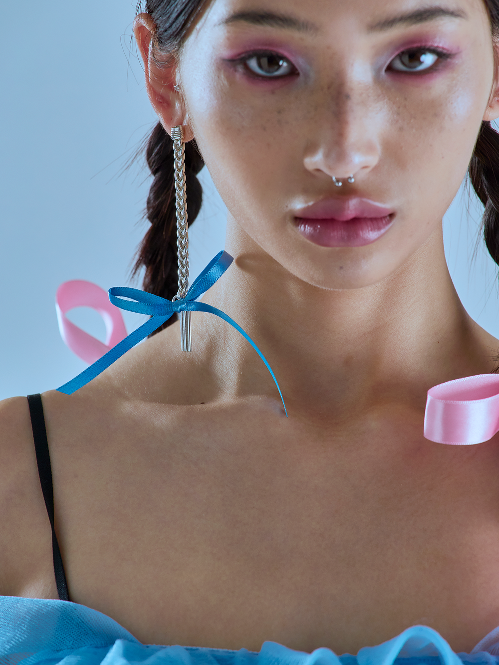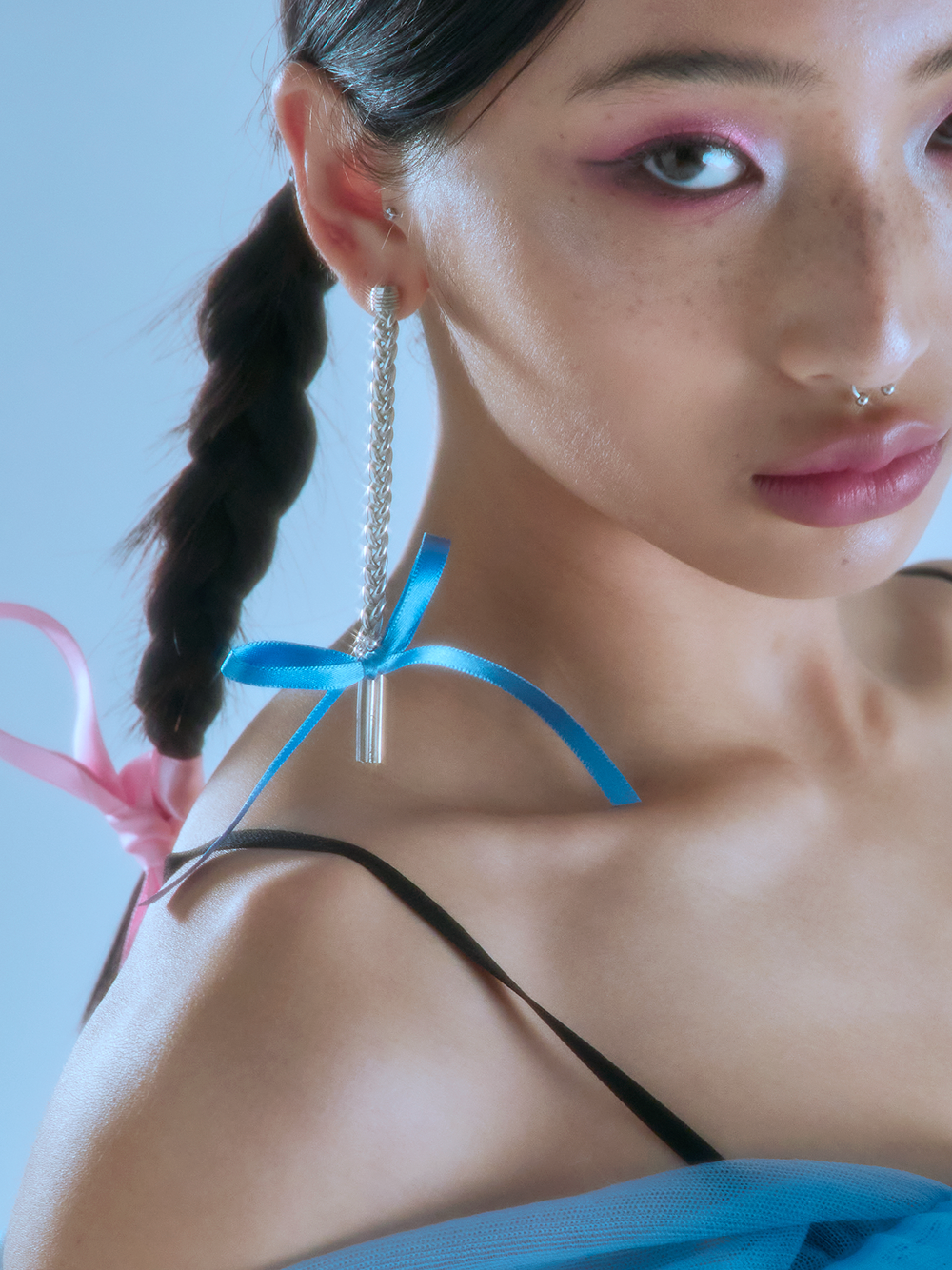 Plaited Hair Earring은 땋은 헤어스타일에서 영감을 받은 귀걸이입니다. sterling silver 92.5% 소재와 반짝거리는 새틴 리본의 조화가 재미있는 제품입니다. 리본을 교체할 때는 오링을 벌려서 오링째로 뺀 후 교체해주세요.