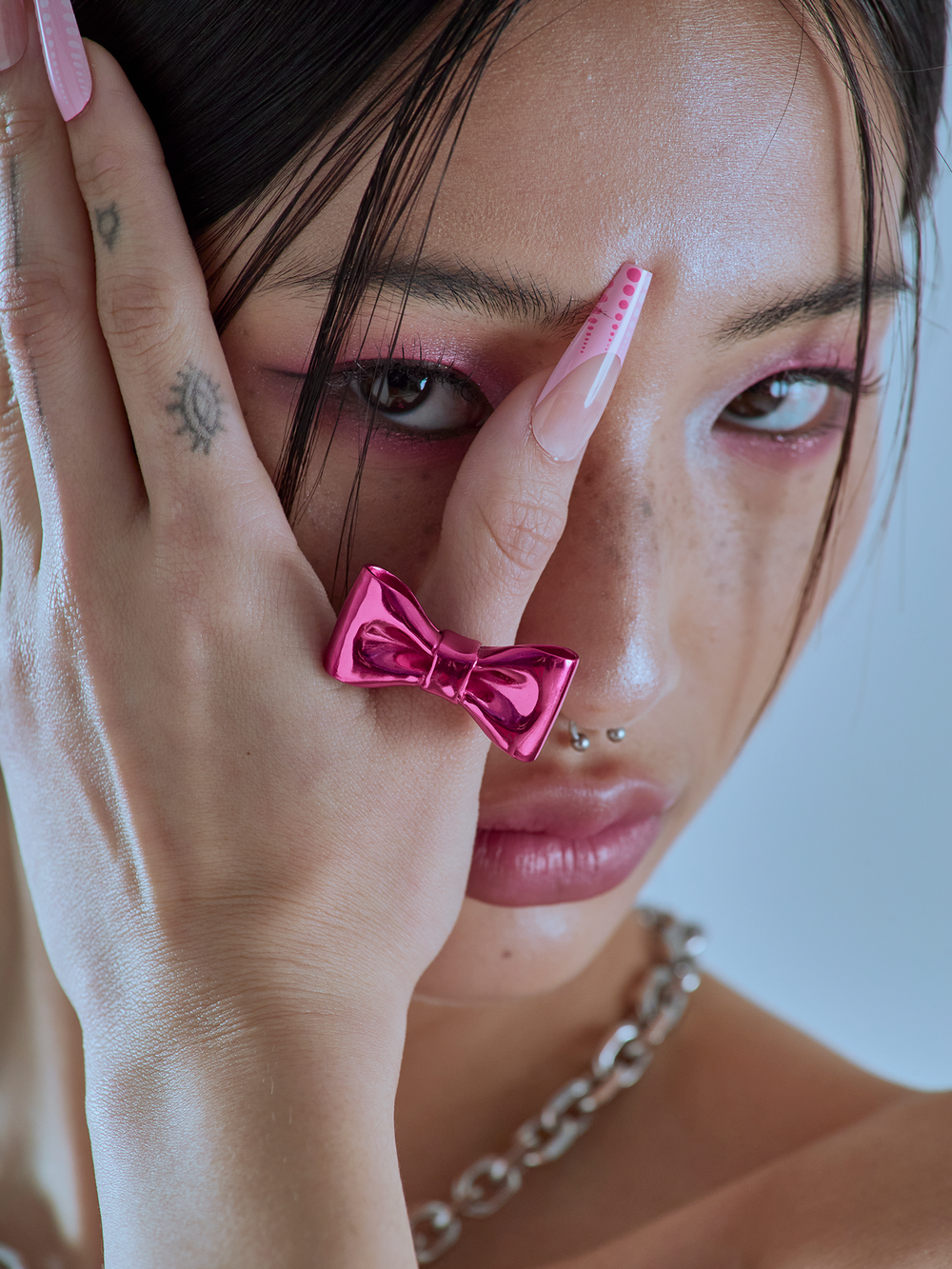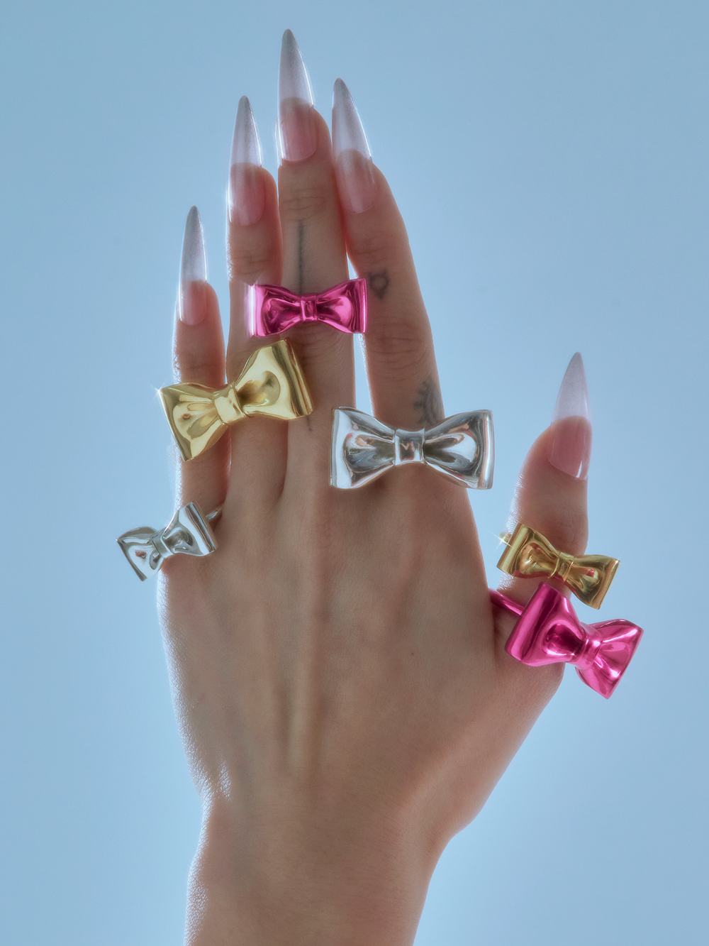 리본의 접힌 주름과 유려한 곡선, 천의 느낌 등을 금속으로 리얼하게 표현해 노악의 아이덴티티가 살아있는 시그니처 리본 링입니다.
