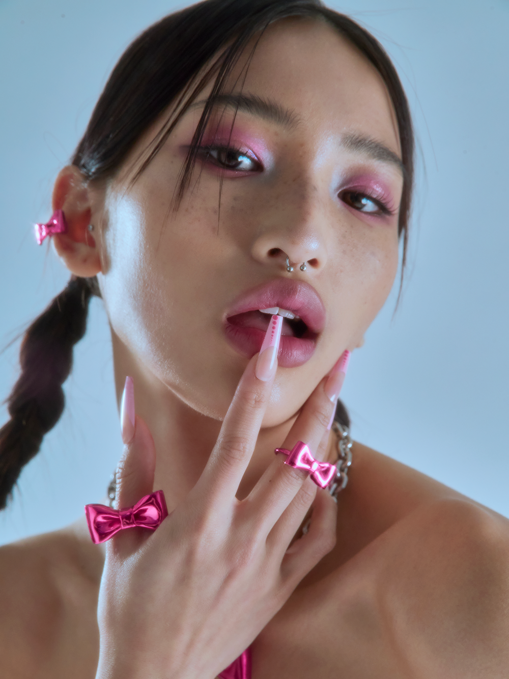 silver plated brass, pink color coated finishing. 브라스에 실버 도금, 핑크 코팅 피니싱.