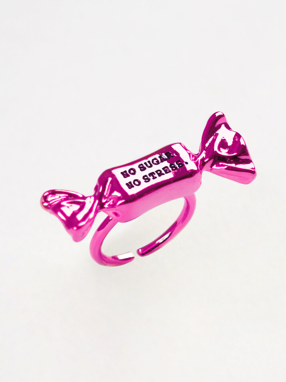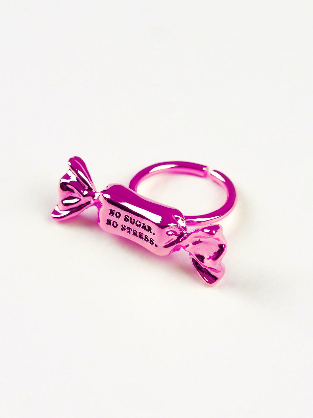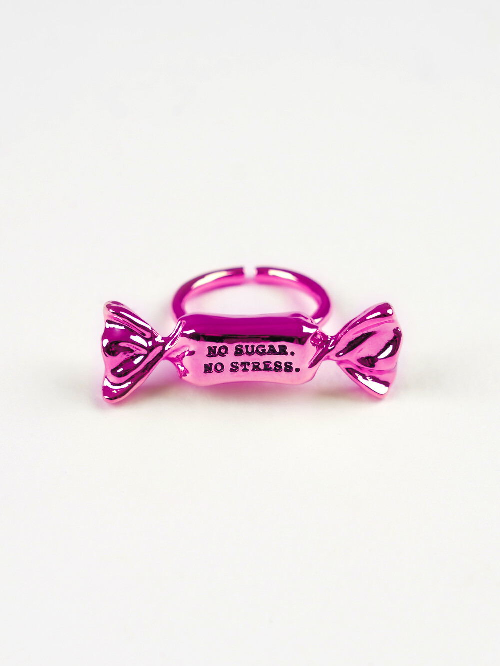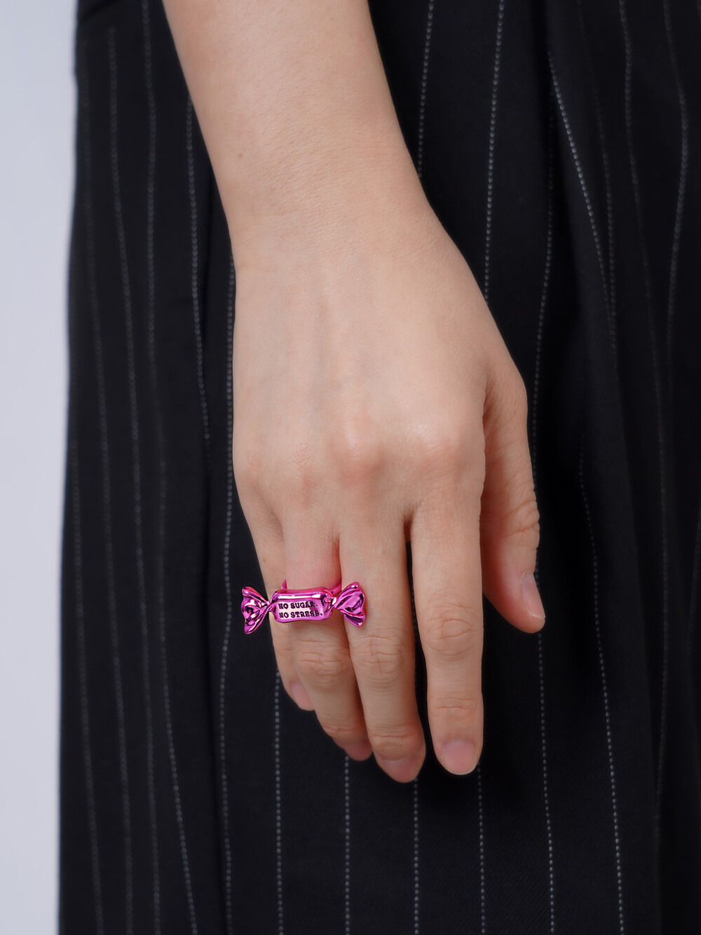 생경한 소재에서 오는 신선함과 독특한 조형미를 갖춘 키치한 아이템입니다. 사탕의 볼륨감과 꼬인 종이의 표현에 신경을 많이 써서 디자인했고, 귀엽지만 유치하지 않도록 미니멀하게 표현했습니다. NO SUGAR, NO STRESS 레터링은 블랙 색상으로 각인하였습니다.