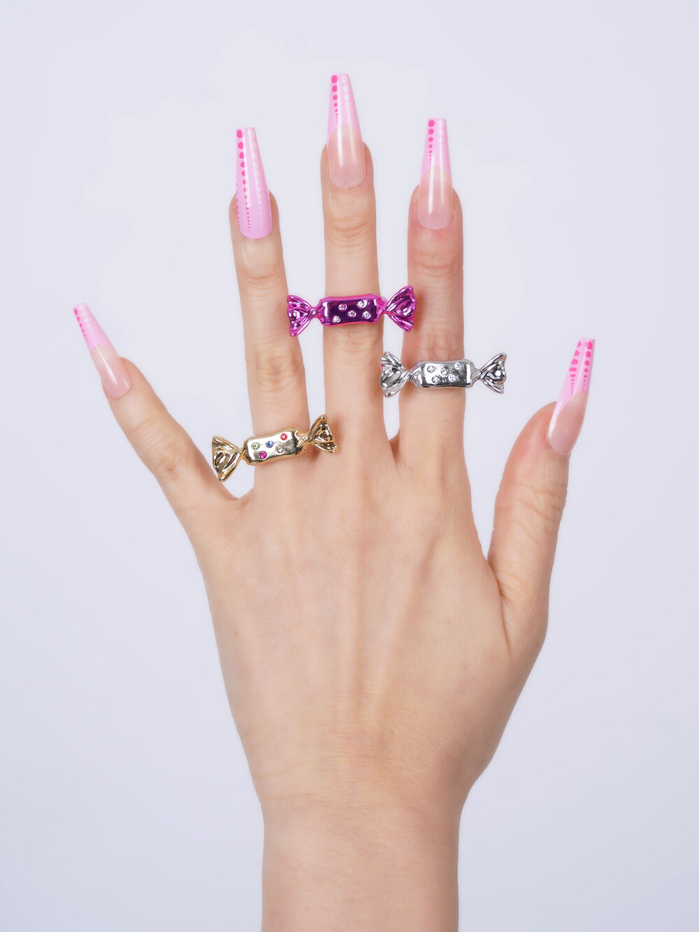 생경한 소재에서 오는 신선함과 독특한 조형미를 갖춘 키치한 아이템입니다. 사탕의 볼륨감과 꼬인 종이의 표현에 신경을 많이 써서 디자인했고, 귀엽지만 유치하지 않도록 미니멀하게 표현했습니다. 반짝이는 스와로브스키 큐빅으로 팝하고 키치한 무드를 한층 더해주었습니다.