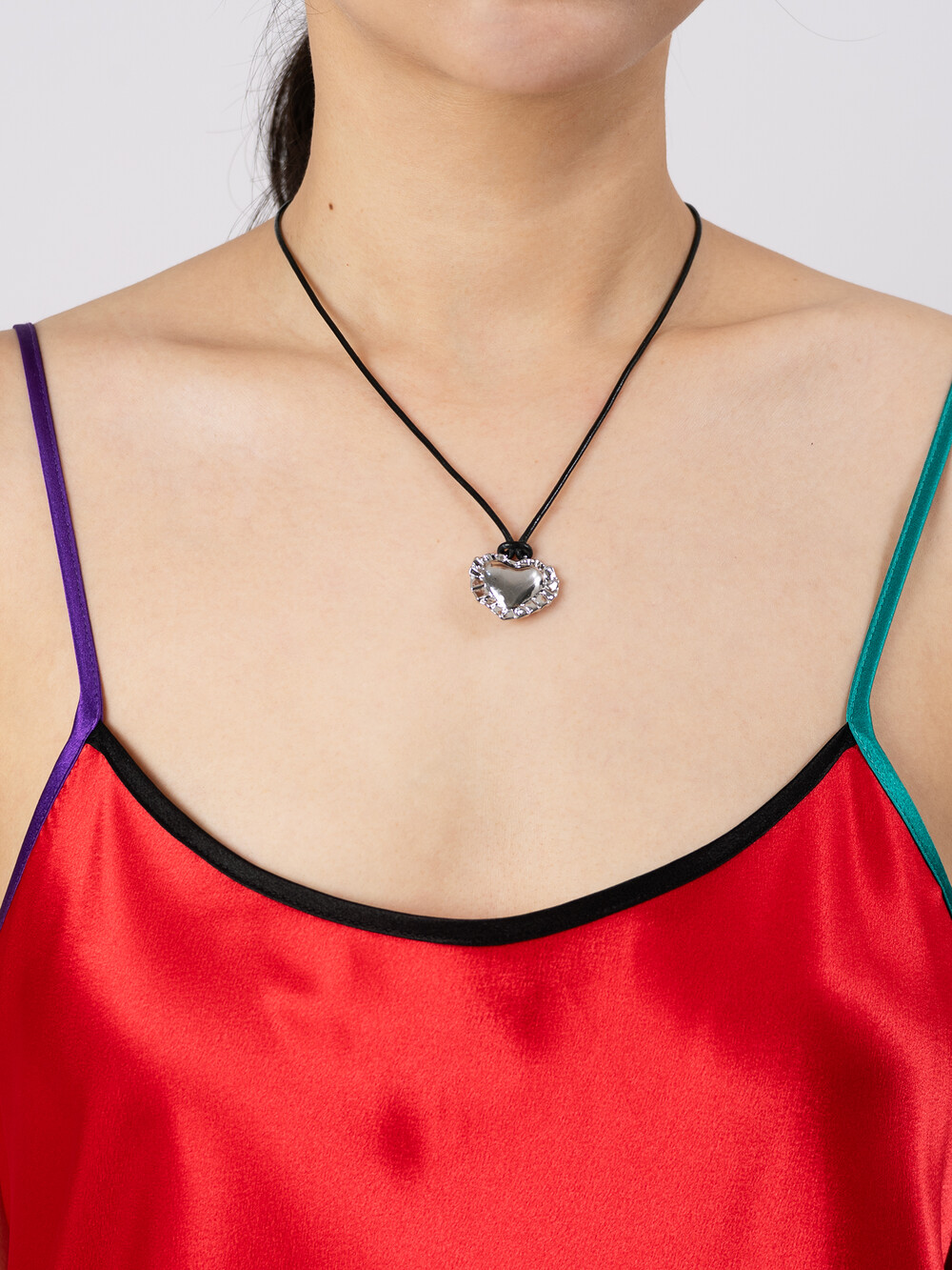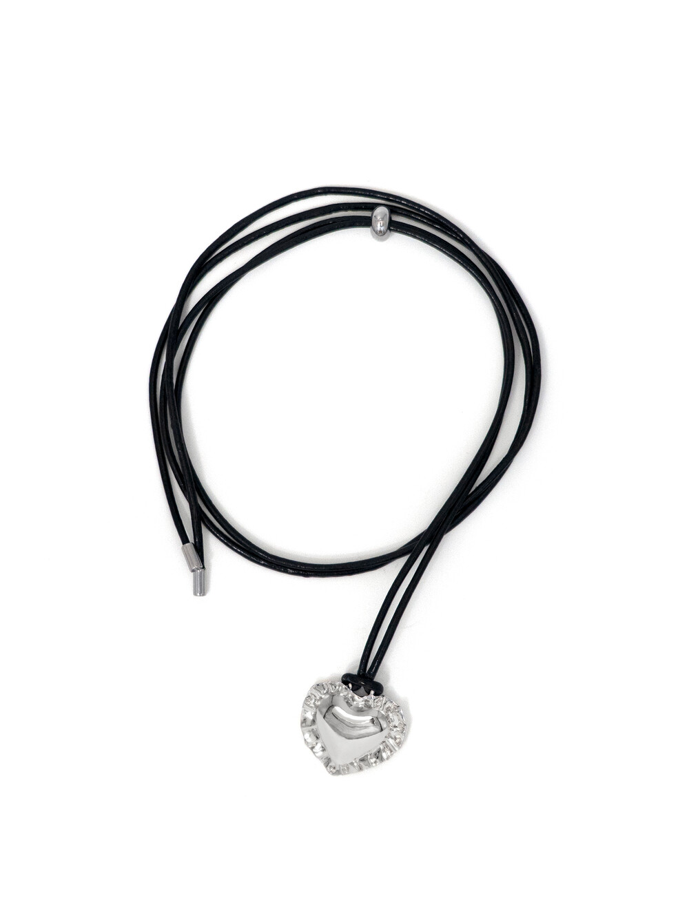 레이스 하트 가죽 네크리스는 고정볼을 움직여 손쉽게 길이 조절과 고정이 가능합니다. 최대 1m의 길이로 스타일에 따라 여러가지 길이로 착용해보세요.