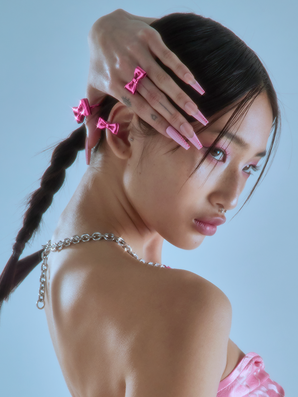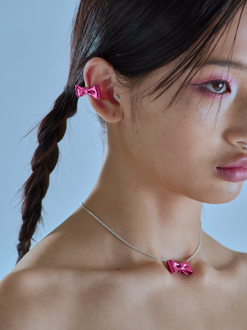 Reborn Ribbon Earcuff-Pink
