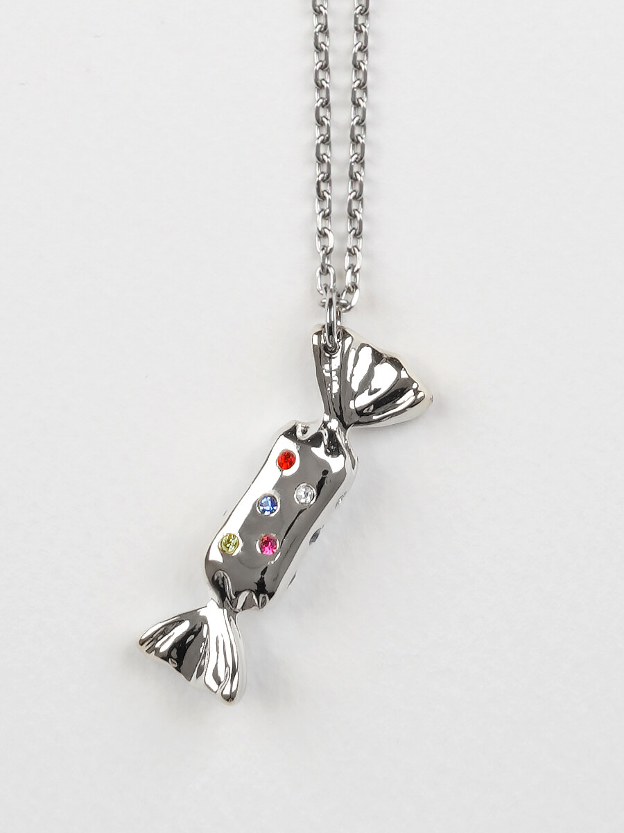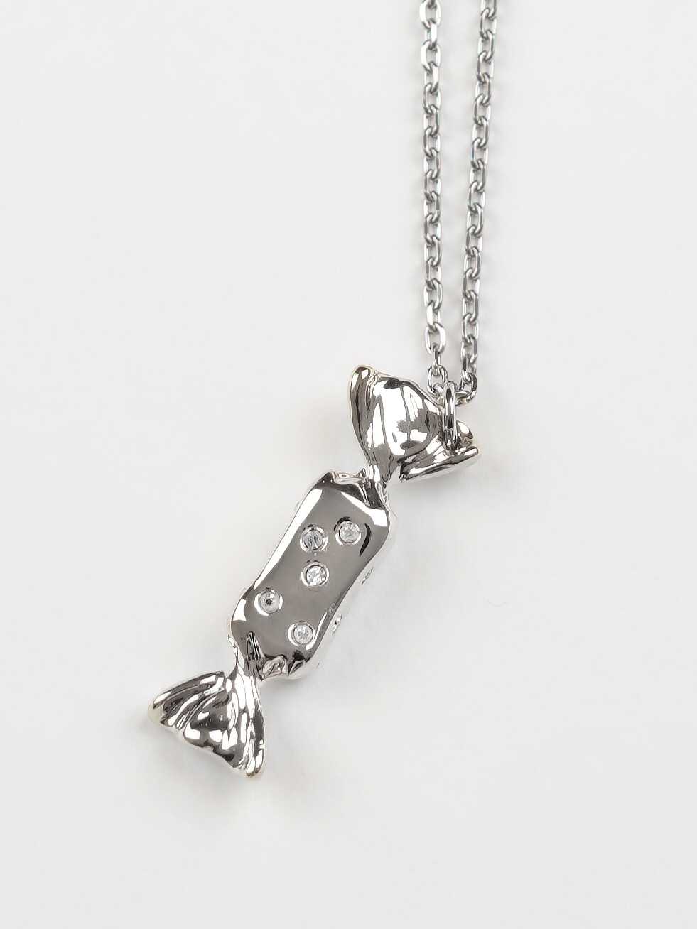 생경한 소재에서 오는 신선함과 독특한 조형미를 갖춘 키치한 아이템입니다. 사탕의 볼륨감과 꼬인 종이의 표현에 신경을 많이 써서 디자인했고, 귀엽지만 유치하지 않도록 미니멀하게 표현했습니다. 반짝이는 스와로브스키 큐빅으로 팝하고 키치한 무드를 한층 더해주었습니다.