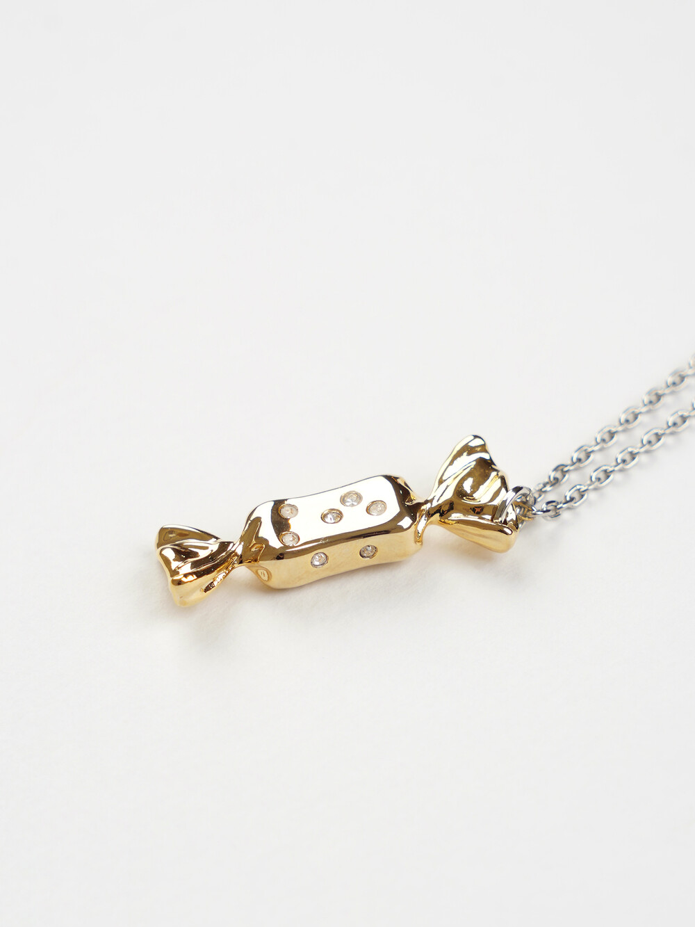 생경한 소재에서 오는 신선함과 독특한 조형미를 갖춘 키치한 아이템입니다. 사탕의 볼륨감과 꼬인 종이의 표현에 신경을 많이 써서 디자인했고, 귀엽지만 유치하지 않도록 미니멀하게 표현했습니다. 반짝이는 스와로브스키 큐빅으로 팝하고 키치한 무드를 한층 더해주었습니다.
