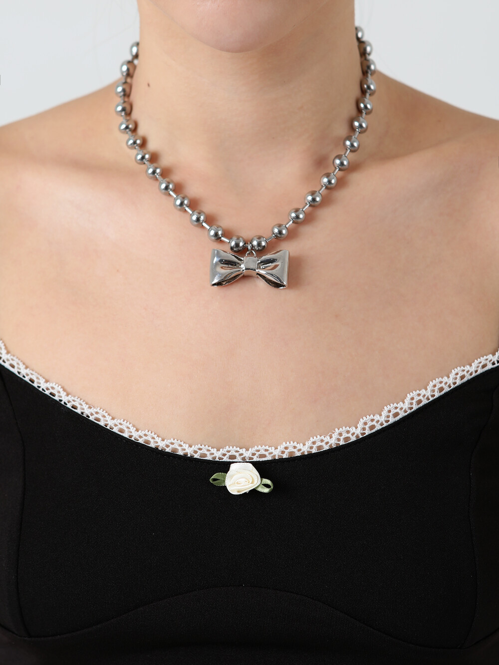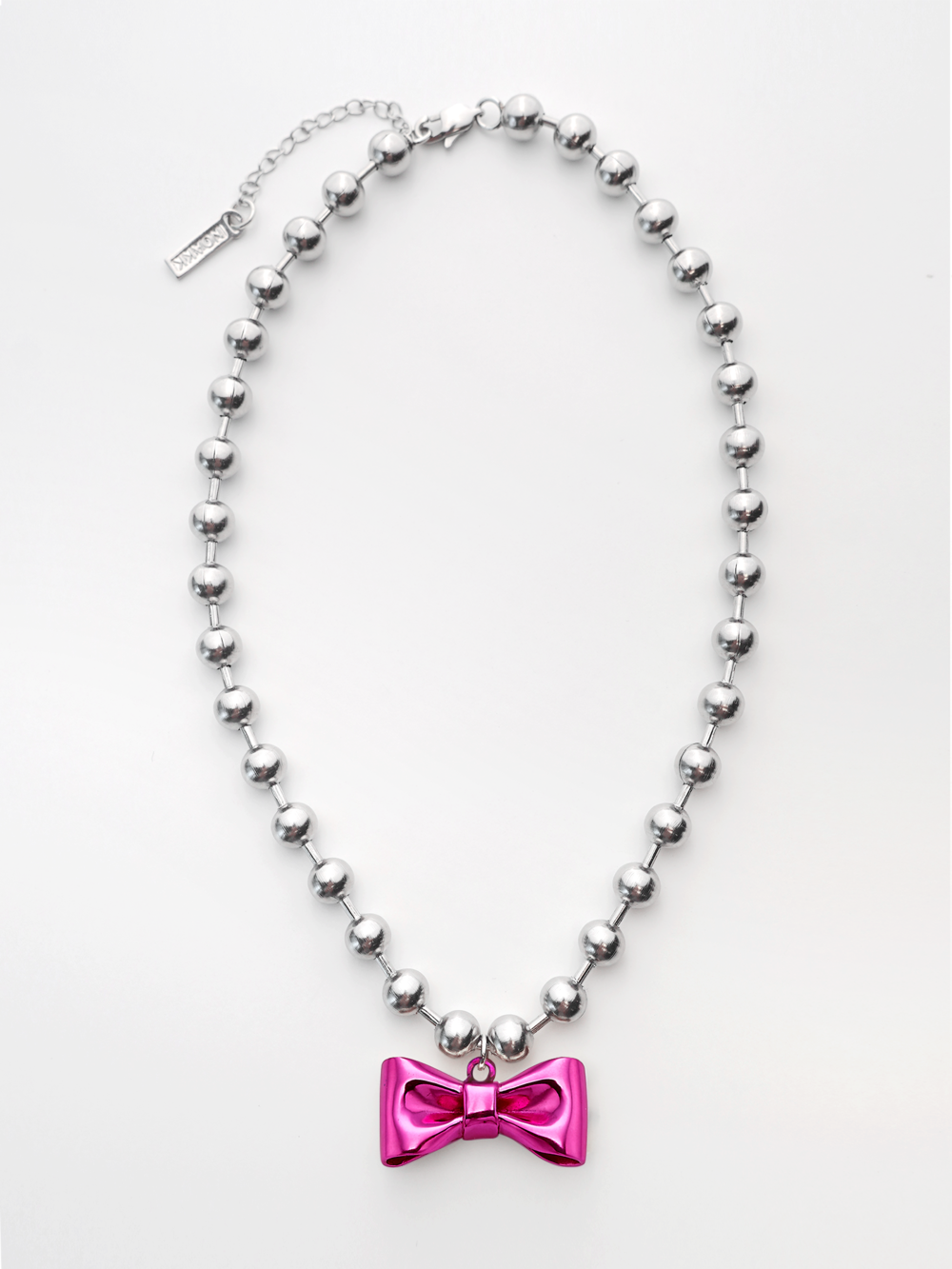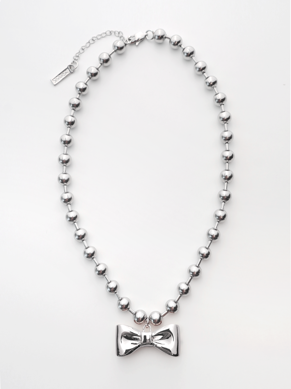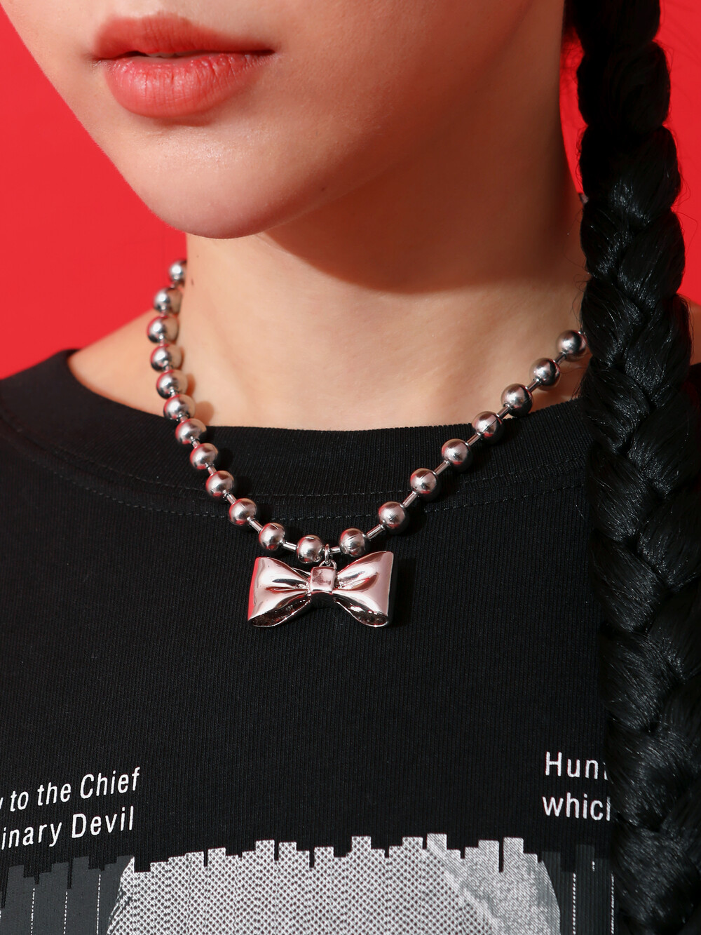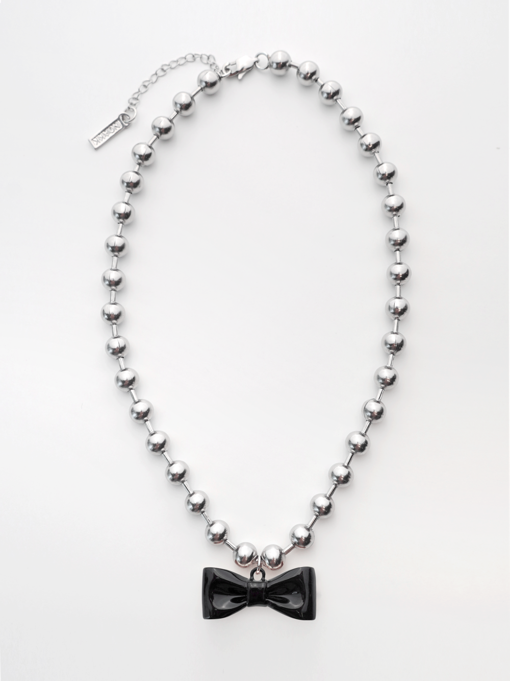 노악의 아이덴티티가 살아있는 시그니처 리본디자인의 목걸이입니다. 4가지 타입의 목걸이 줄에 따라 자신이 좋아하는 목걸이를 고를 수 있습니다. Reborn Ribbon Ball Chain Necklace 002은 8mm 볼체인으로, 볼드하고 임팩트있는 디자인입니다.