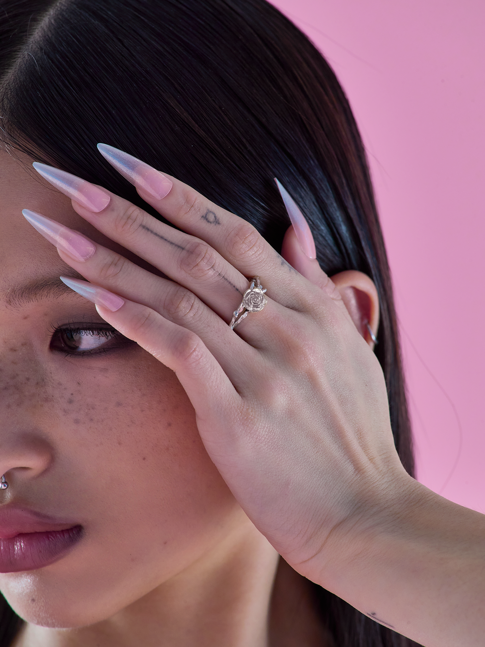 아름답고 섹시하지만 쌀쌀맞고 위험한, 꽃의 여왕 장미. 강렬한 상징과 영감의 원천인 장미를 표현한 링입니다. 페미닌하고 섹시한 무드를 즐기세요.