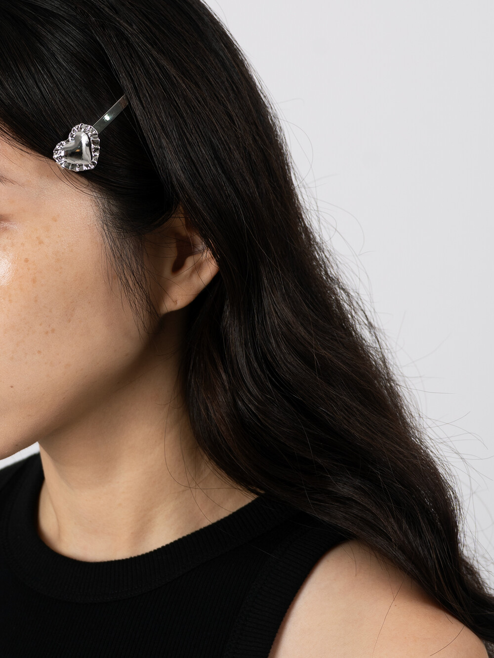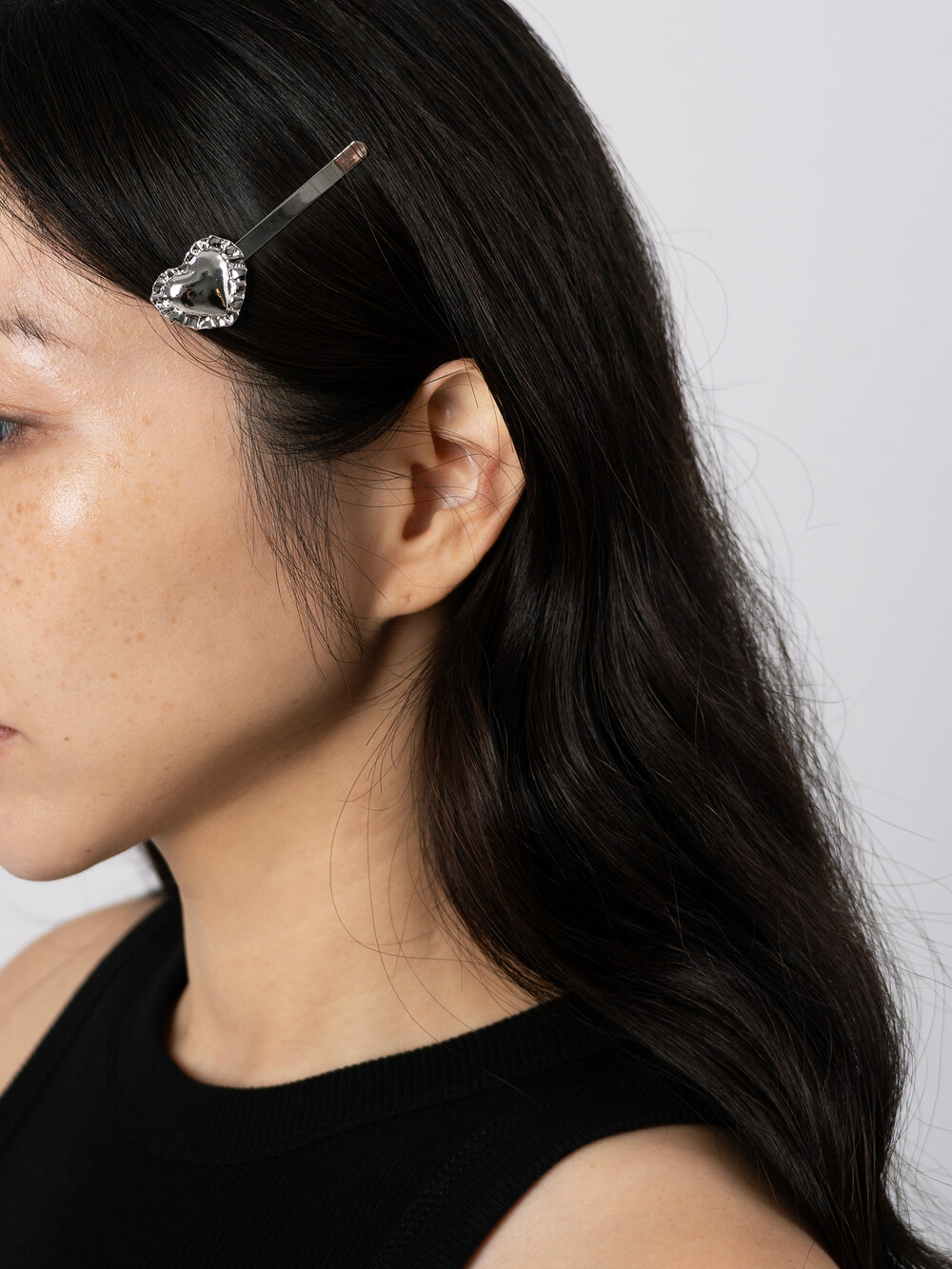 레이스 하트 헤어핀은 하나만 착용해도 존재감 있고 사랑스러운 분위기를 자아냅니다. 6.5cm의 길이로 고정력이 매우 좋습니다.