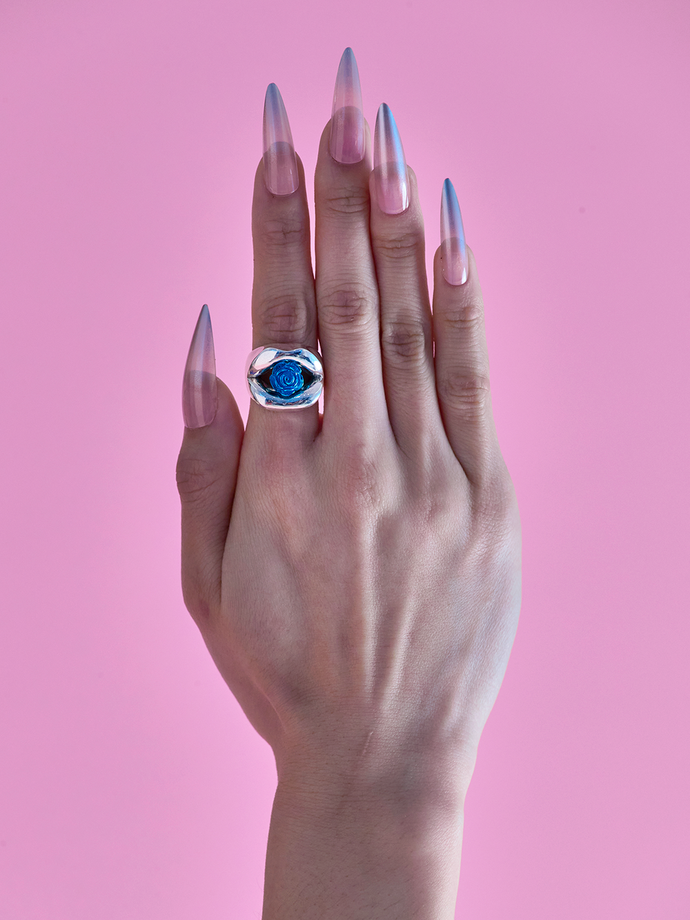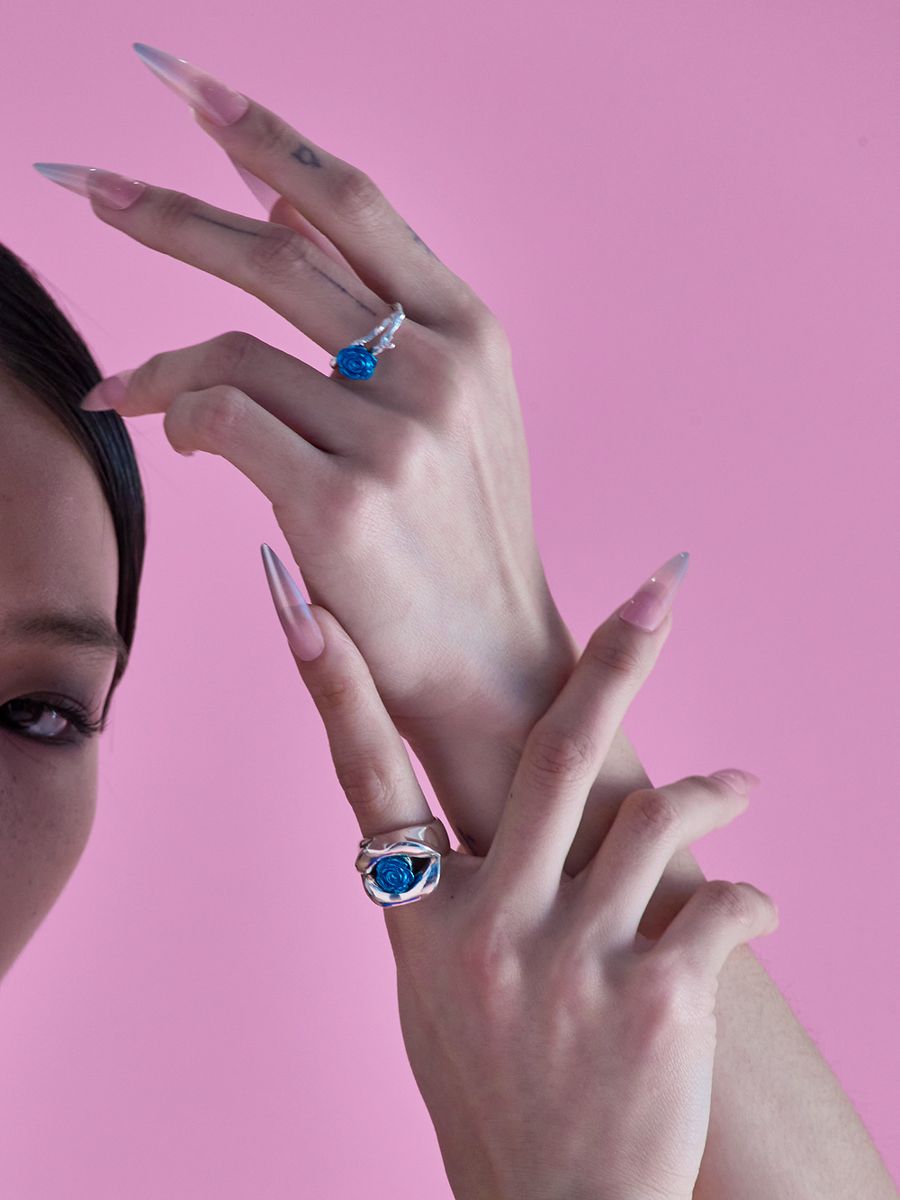 섬세한 핸드크라프트로 장미의 겹겹의 잎을 표현했고, 반지의 형태를 잡아주는 입술은 모던하고 볼드하게 표현했습니다. 자신만의 아이덴티티가 있는 묵직한 링을 원하신다면 추천드리는 제품입니다.