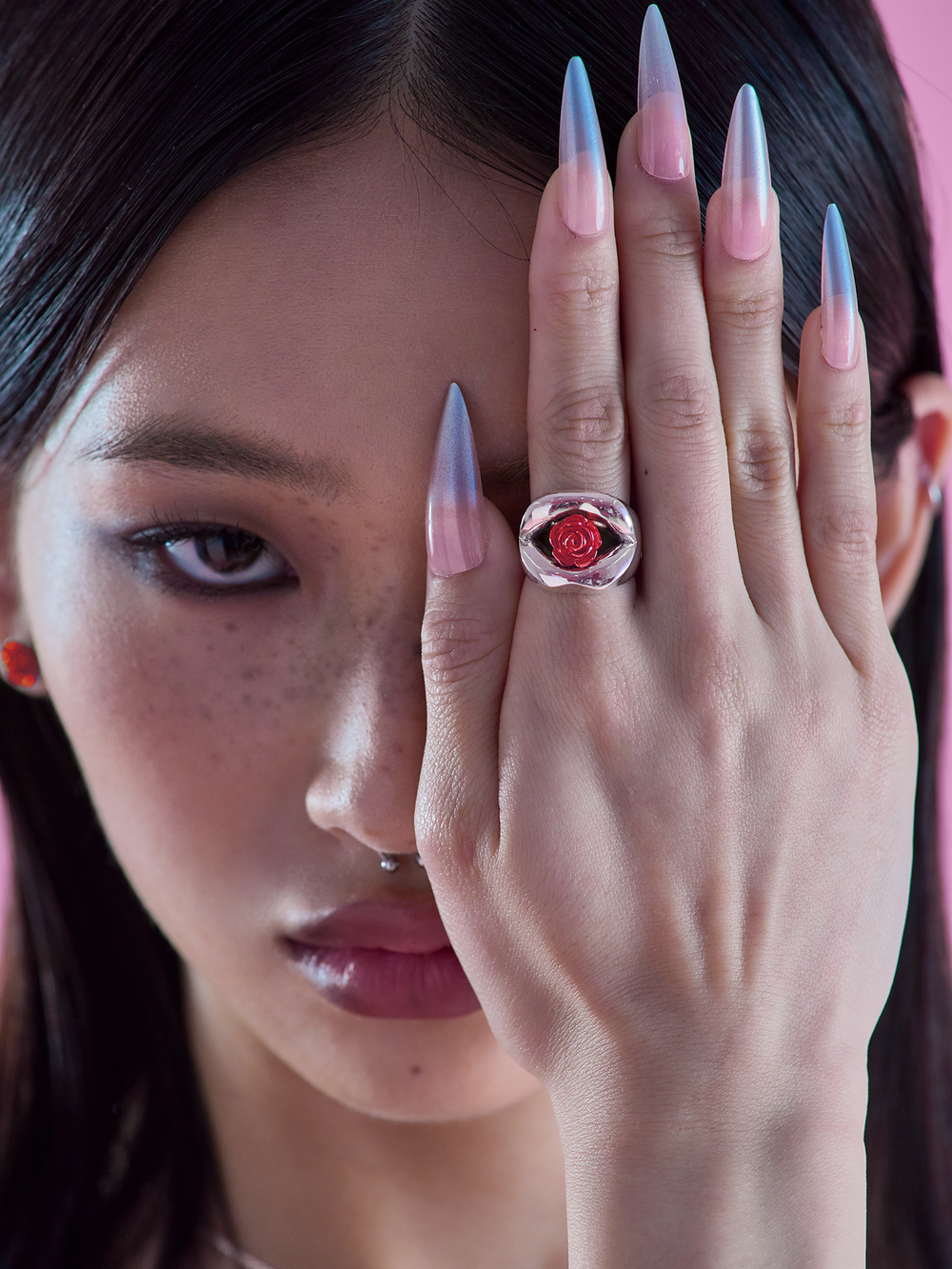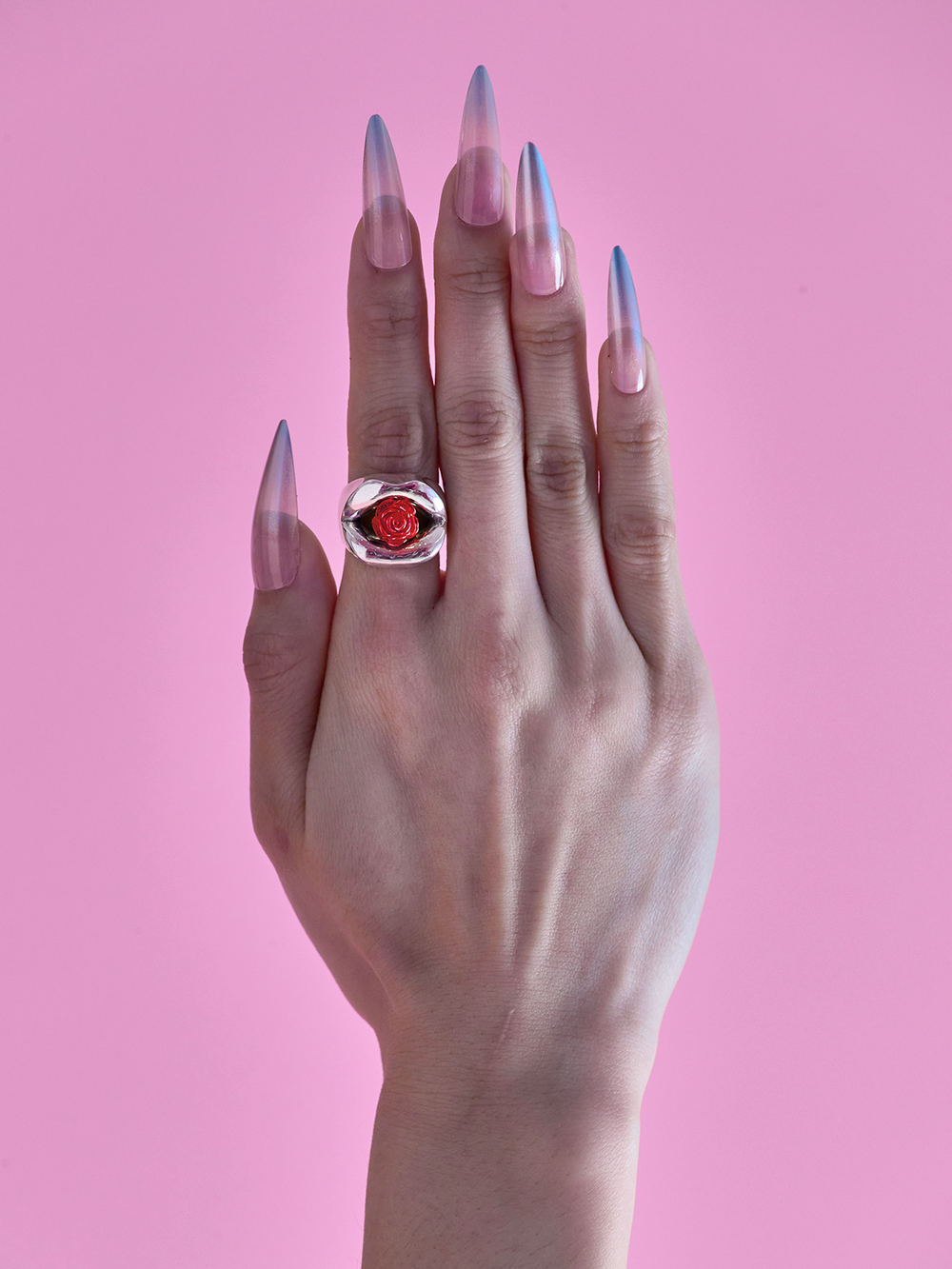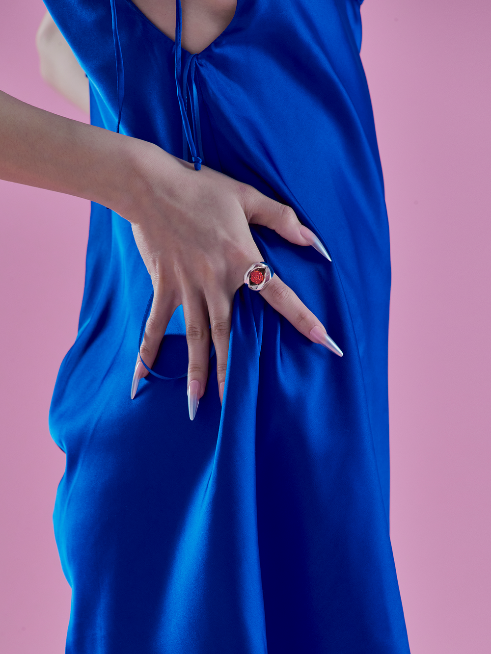 섬세한 핸드크라프트로 장미의 겹겹의 잎을 표현했고, 반지의 형태를 잡아주는 입술은 모던하고 볼드하게 표현했습니다. 자신만의 아이덴티티가 있는 묵직한 링을 원하신다면 추천드리는 제품입니다.