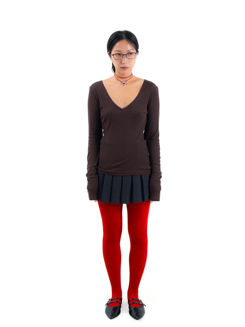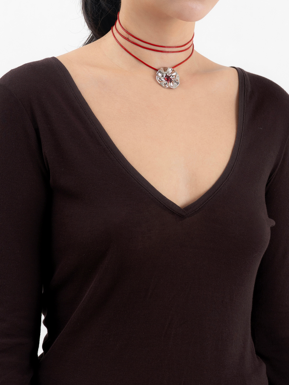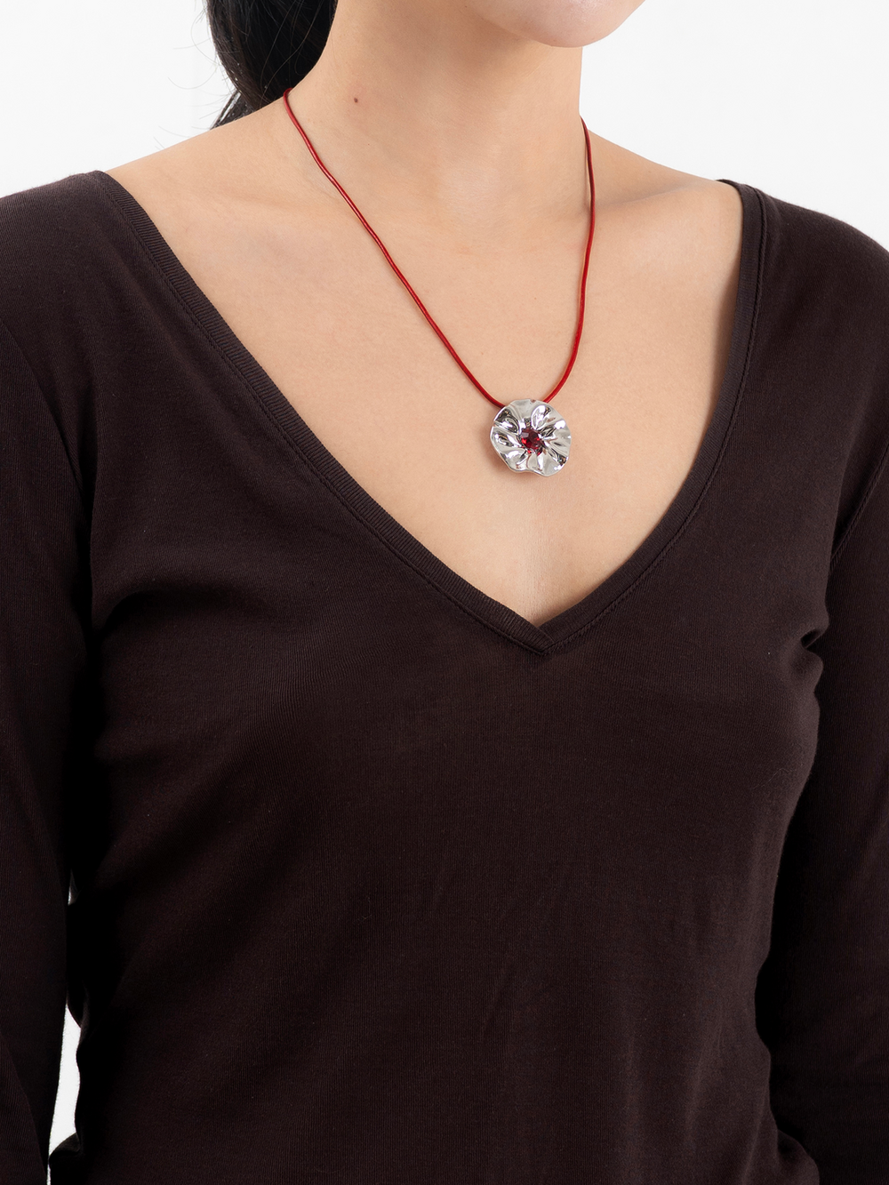 Flower Leather Necklace-Red