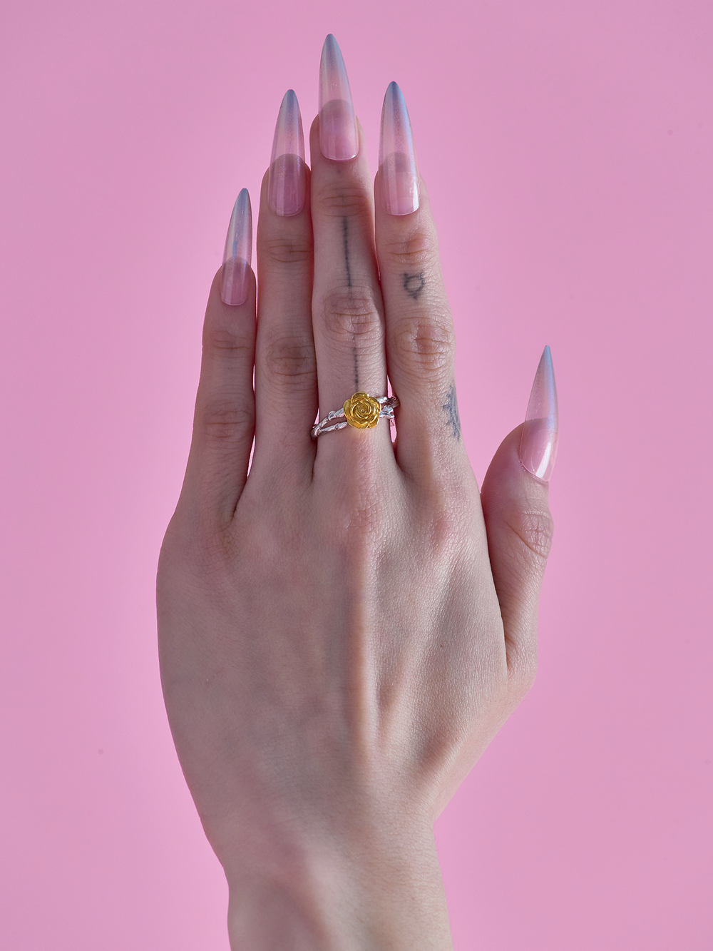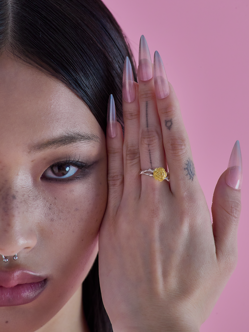 아름답고 섹시하지만 쌀쌀맞고 위험한, 꽃의 여왕 장미. 강렬한 상징과 영감의 원천인 장미를 표현한 링입니다. 페미닌하고 섹시한 무드를 즐기세요.