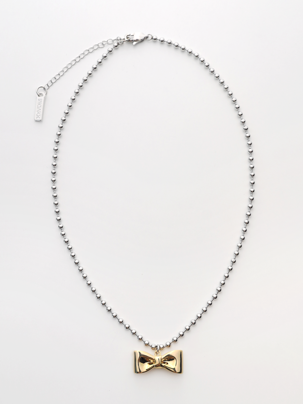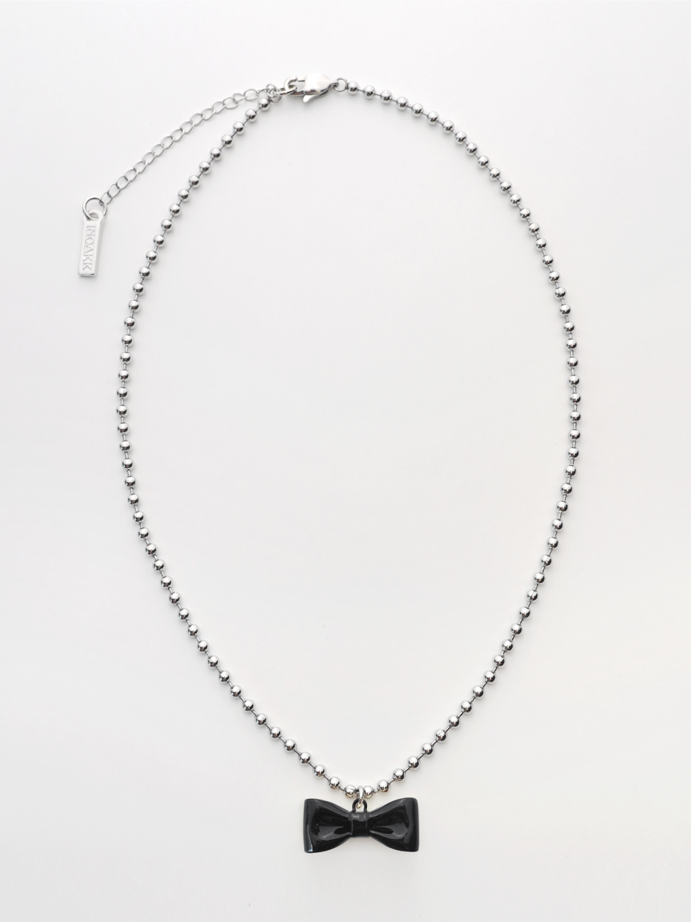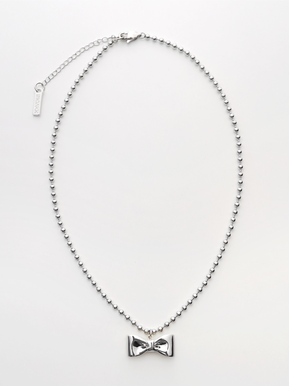 노악의 아이덴티티가 살아있는 시그니처 리본디자인의 목걸이입니다. 4가지 타입의 목걸이 줄에 따라 자신이 좋아하는 목걸이를 고를 수 있습니다. Reborn Ribbon Ball Chain Necklace 001은 3mm 작은 볼체인으로, 데일리하게 착용할 수 있는 디자인입니다.