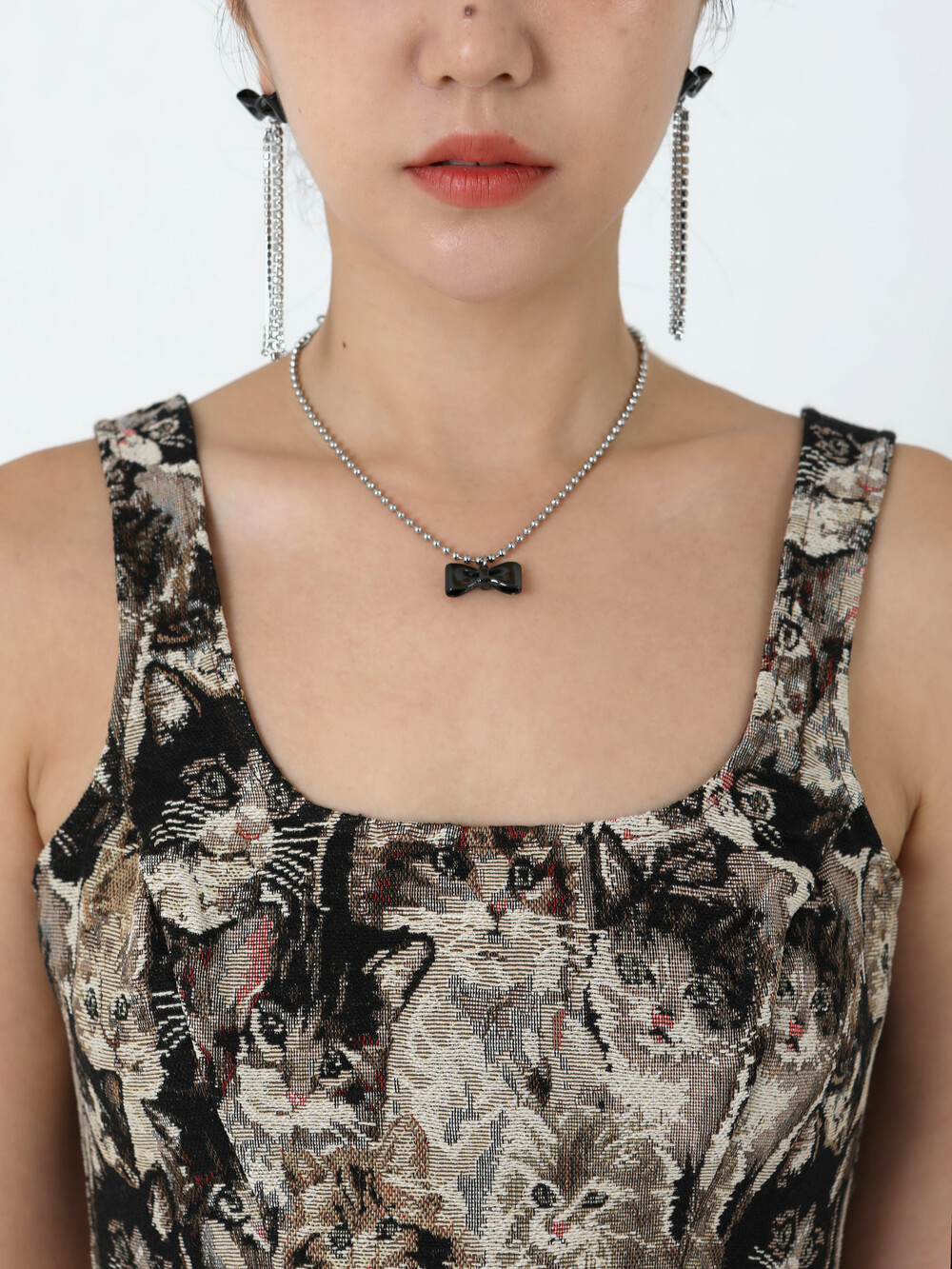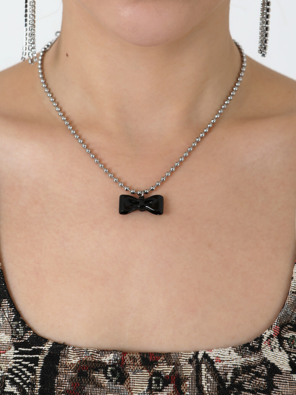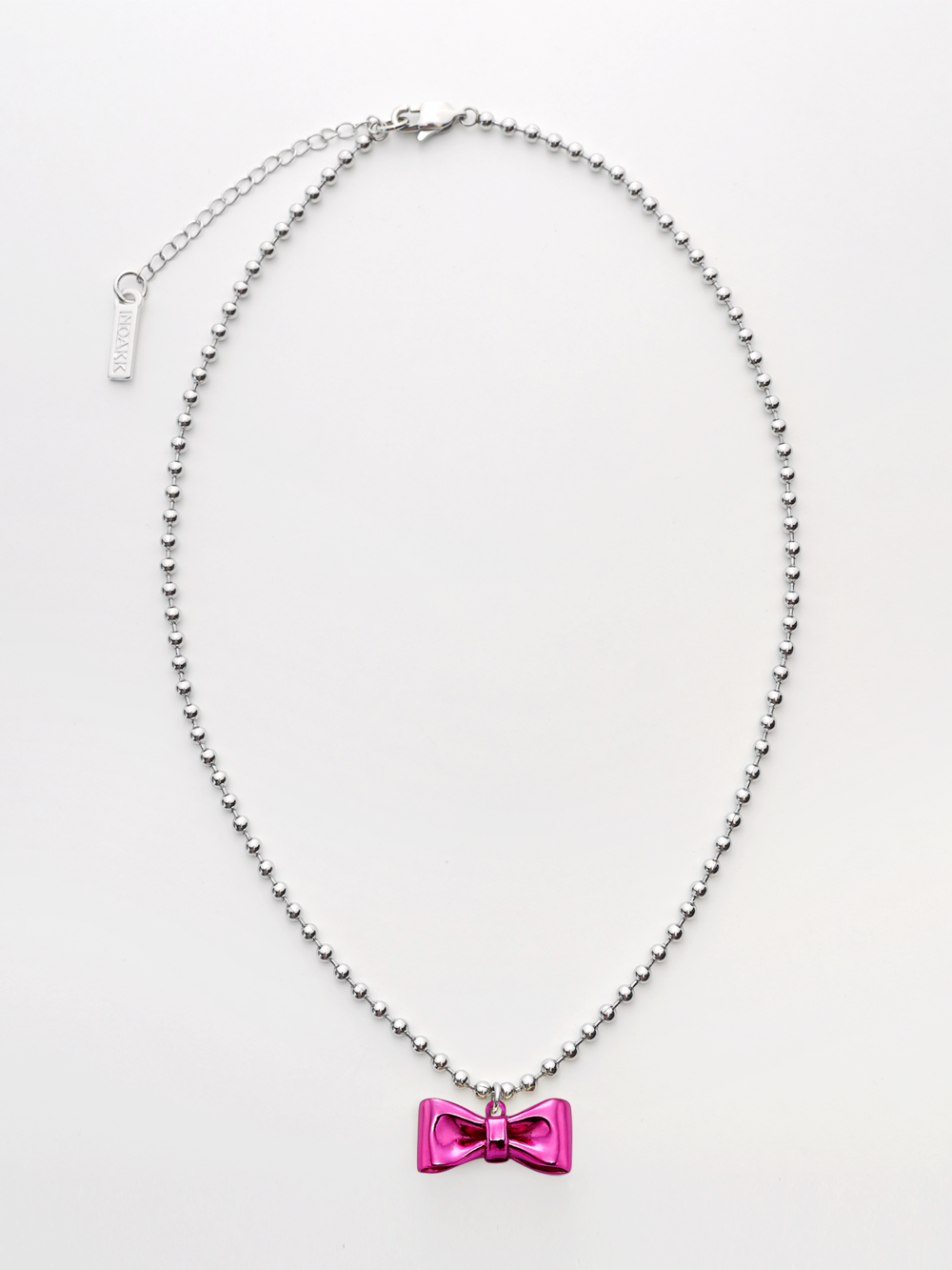 노악의 아이덴티티가 살아있는 시그니처 리본디자인의 목걸이입니다. 4가지 타입의 목걸이 줄에 따라 자신이 좋아하는 목걸이를 고를 수 있습니다. Reborn Ribbon Ball Chain Necklace 001은 3mm 작은 볼체인으로, 데일리하게 착용할 수 있는 디자인입니다.