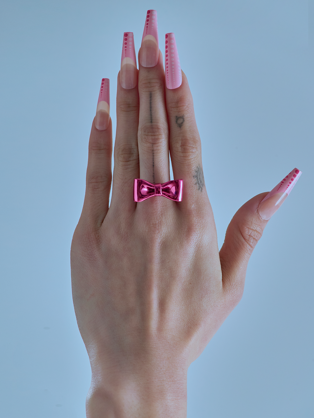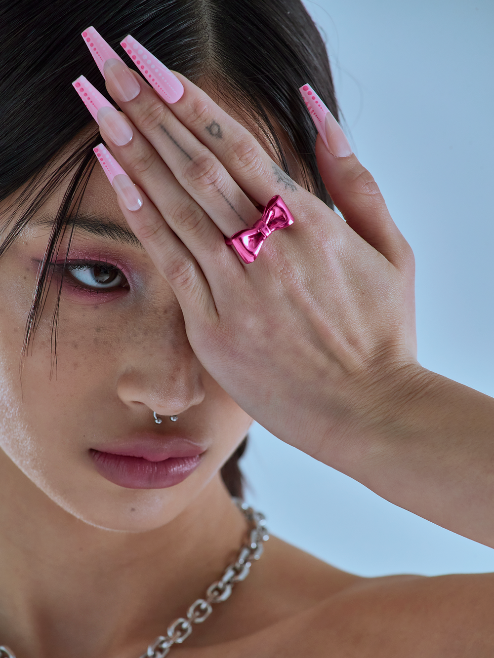 리본의 접힌 주름과 유려한 곡선, 천의 느낌 등을 금속으로 리얼하게 표현해 노악의 아이덴티티가 살아있는 시그니처 리본 링입니다.