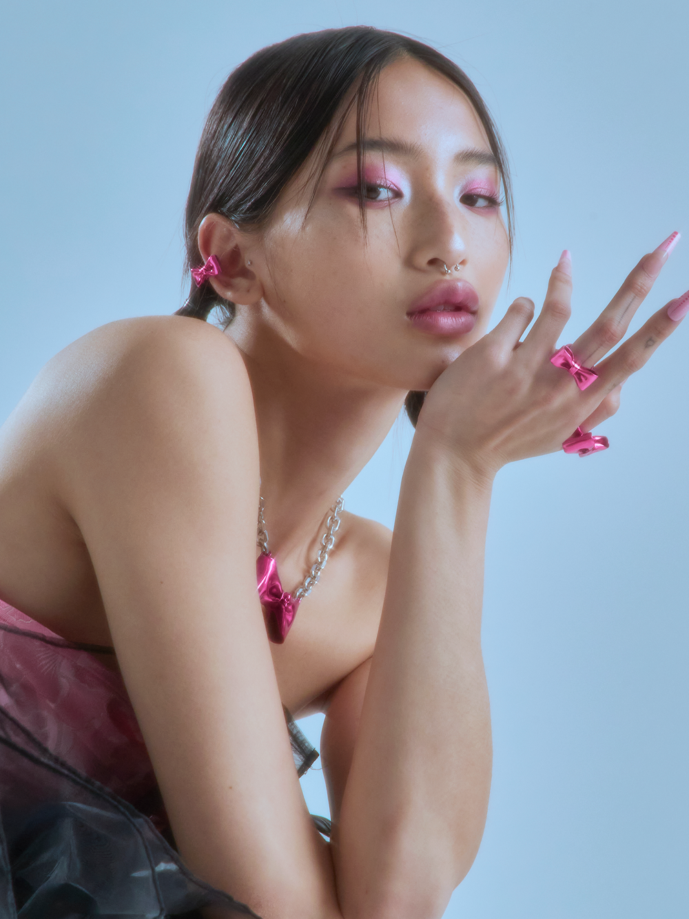 silver plated brass, pink color coated finishing. 브라스에 실버 도금, 핑크 코팅 피니싱.